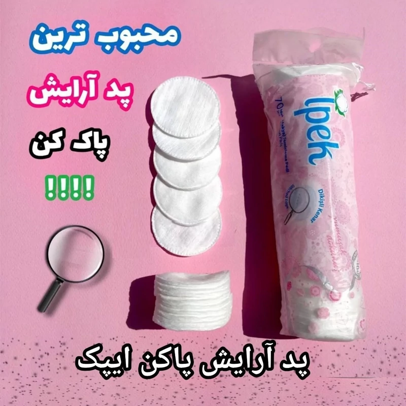 پد آرایش پاک کن ایپک (Ipek)🙋🏻😊 • مناسب استفاده روزانه • بافت نرم • مناسب پاک کردن آرایش • جلوگیری از پخش مواد آرایشی • حاوی 70 عدد • جنس پنبه ای • مناسب: پوست چرب، پوست خشک، انواع پوست، پوست معمولی، پوست حساس • مناسب برای: صورت، چشم، گردن، لب، بدن ✅ آرایش و آلودگی باقیمانده روی پوست، در طول روز منافذ پوست را میپوشاند و پوست دچار مشکلاتی میگردد. بهتر است در پایان روز پوست را پاکسازی کرده و به آن رسیدگی کنیم. پد آرایش پاک کن ایپک، یک محصول کاربردی و مفید است که براحتی قابل تهیه میباشد. 🛍️این محصول حاوی 70 عدد پد آرایشی است که از الیاف طبیعی ساخته شده که به دلیل داشتن بافت نرم و لطیف برای انواع پوست مناسب است و برخلاف دستمالهای کاغذی پوست را خشک نمیکند. لبه ی بیرونی این پد دارای دوخت بسیار نرم بوده که از پخش شدن مواد جلوگیری می نماید. 🛍️پد آرایش پاک کن ایپک به همراه تونر ها و میسلار واتر ها قابل استفاده است و بافت مخملی و نرم آن پوست را اذیت نخواهد کرد.