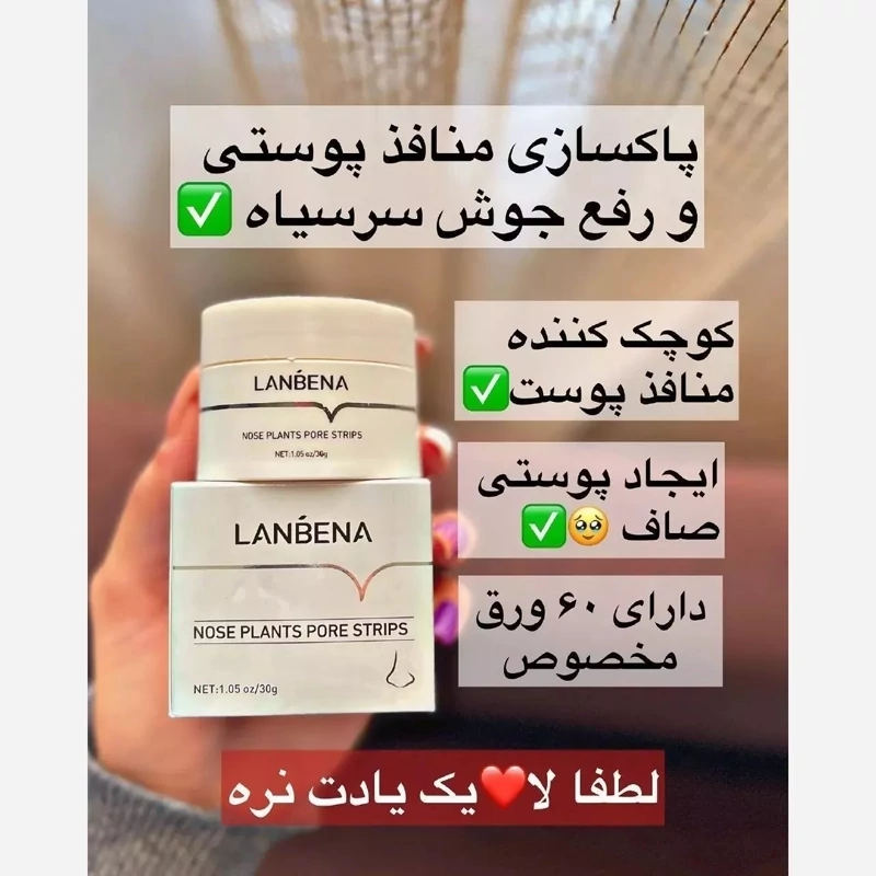 چسب بینی ضدجوش سرسیاه لانبنا (قابل استفاده برای بینی.چانه.پیشانی وگونه) ✅ مشخصات چسب بینی لانبنا 👇 •حاوی عصاره آلوئه ورا، سدیم، هیالورونیک •اسید، عصاره های گیاهی، ذغال فعال و.. •بسیار مغذی •کنترل کننده قدرتمند چربی پوست •مناسب انواع پوست •پاک کننده عمیق منافذ پوست •از بین برنده موثر جوش سر سیاه •کوچک کننده منافذ •مرطوب کننده پوست •کاهش آکنه پوستی •کاهش التهاب و حساسیت •مرطوب کننده •ترمیم کننده ✅ 30 گرم + 60 چسب 🔴شیوه مصرف چسب ضد جوش سرسیاه لانبنا: _صورت خود را با شوینده و تونر کاملا تمیز کنید _یک لایه نازک از کرم را بر روی پوست خود بمالید _توسط چسب آن ناحیه را بپوشانید _بعد از 5-10 دقیقه که کرم خشک شد آن را بردارید (قبل از استفاده کرم را در آب ولرم قرار دهید تا کمی شل شود) خییییییییلی به صرفه هست برای60 بار میشه🤯 🛍️🙋🏻👇🏻
