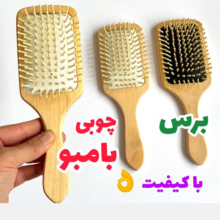 برس چوبی بامبو سایز بزرگ مستطیلی نوک پهن برس مو