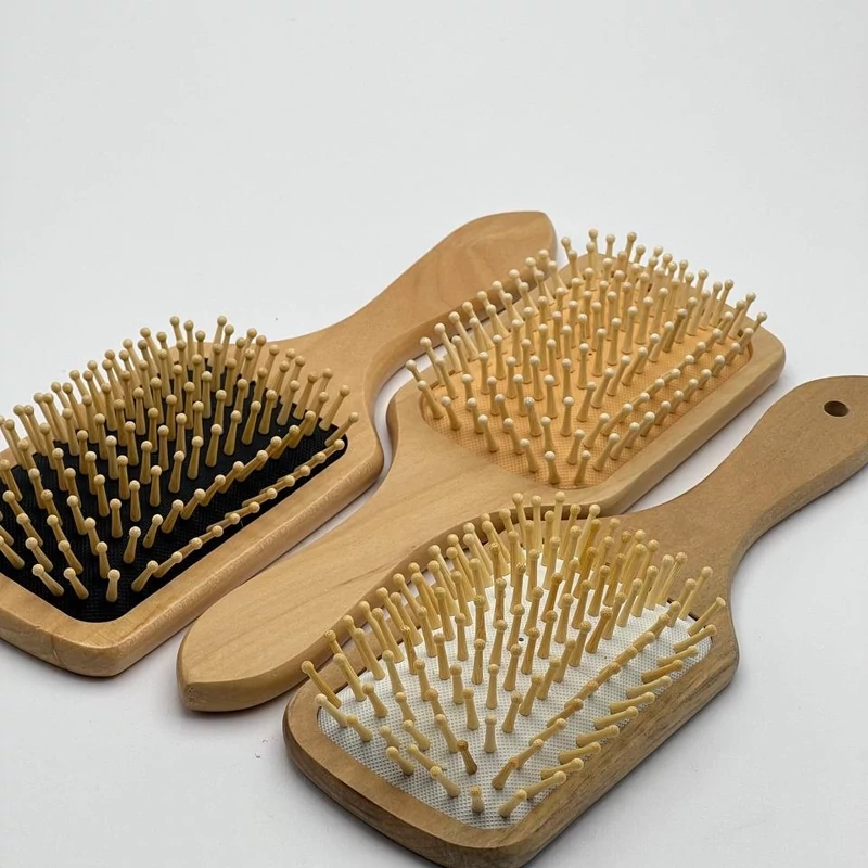 برس چوبی بامبو سایز بزرگ مستطیلی نوک پهن برس مو