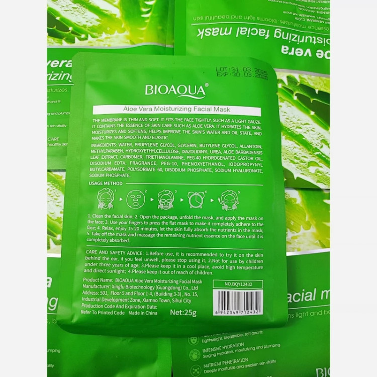 ماسک ورقه ای آلوئه ورا بیواکوا 25گرم ماسک ورق الویه ورا